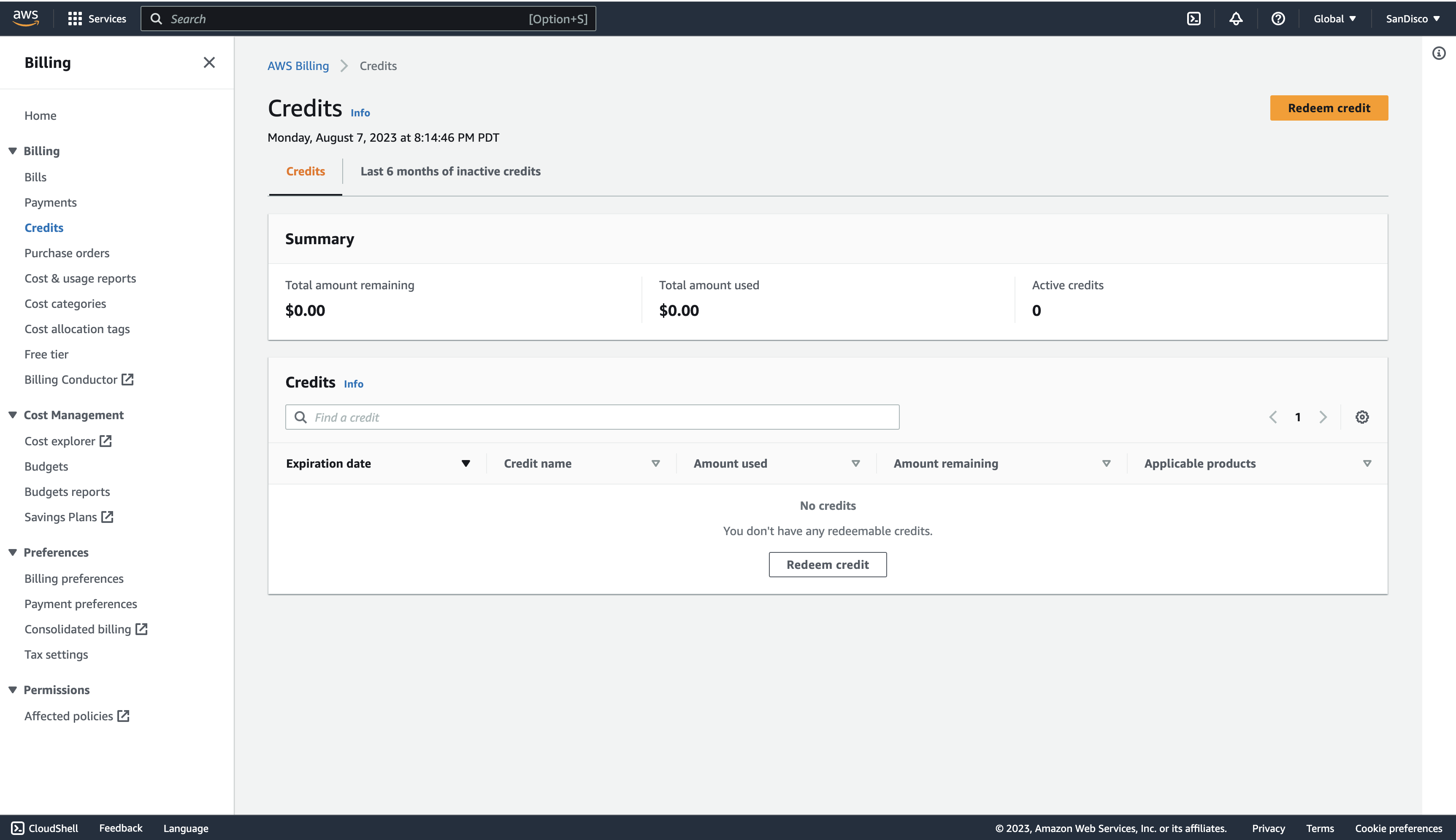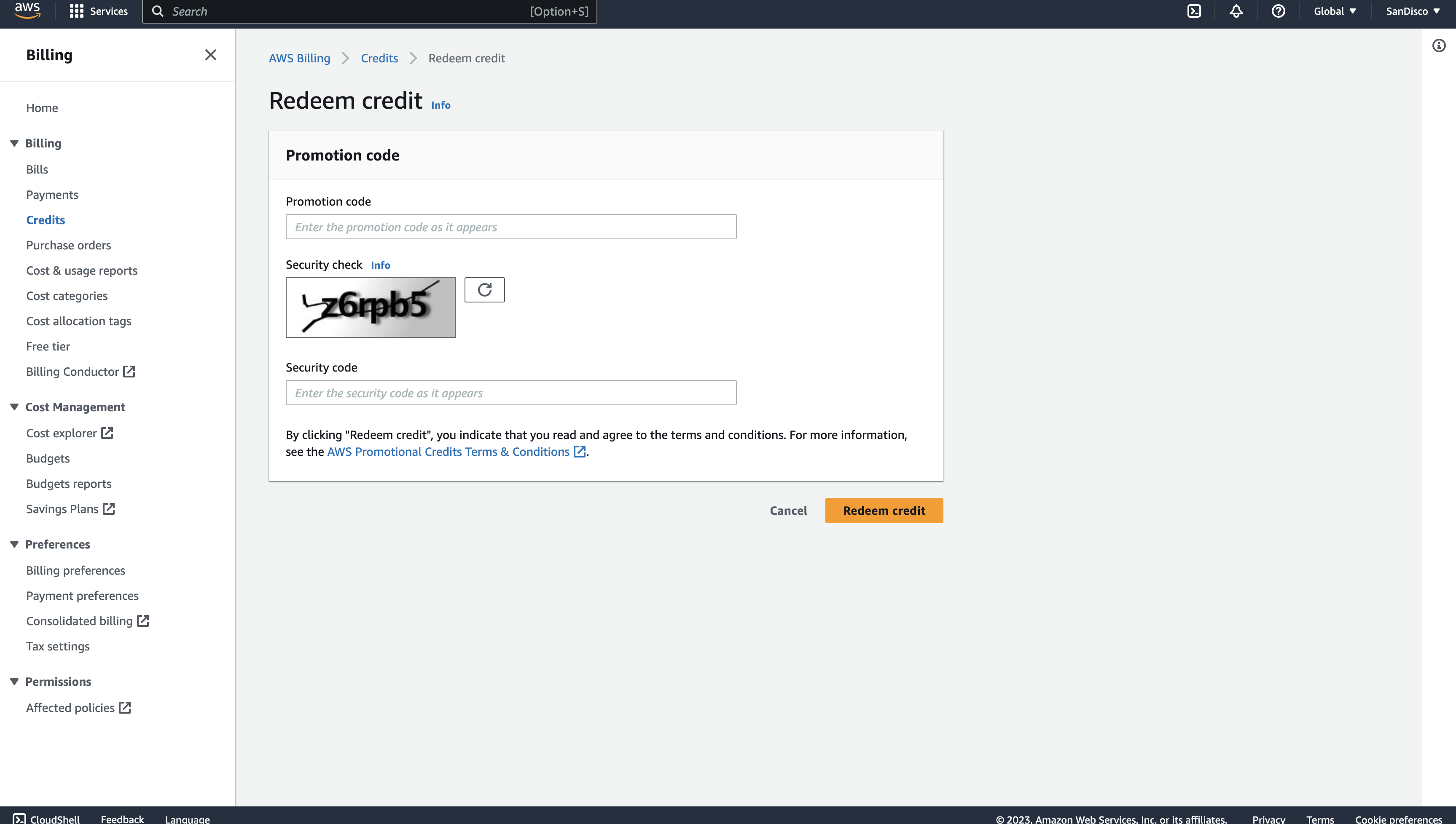 click credit on the left menu and then click redeem credit to apply credit and this where we can add our credit
