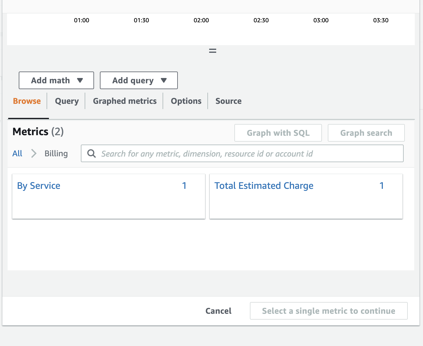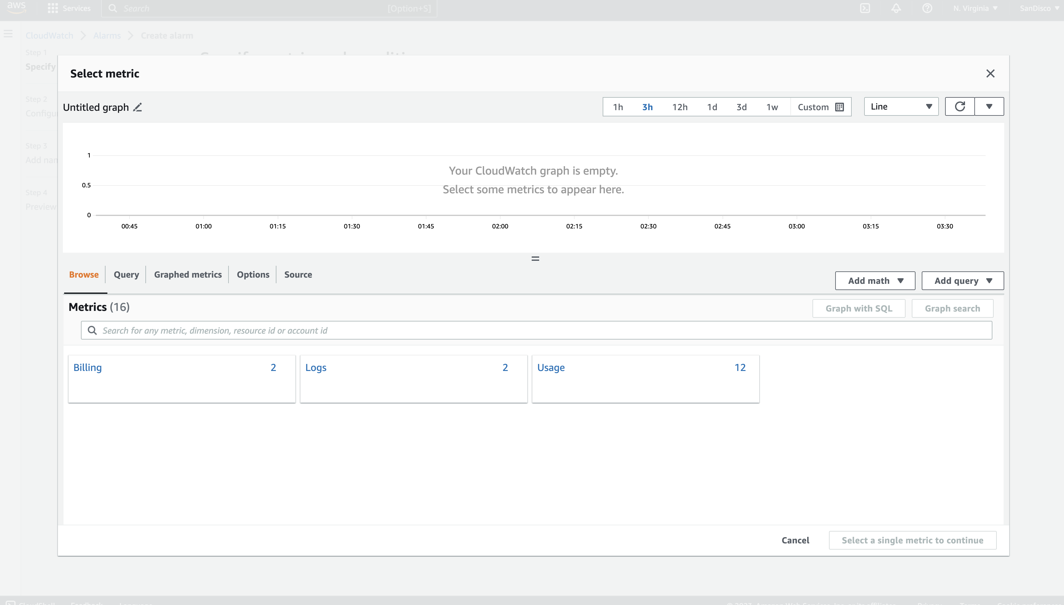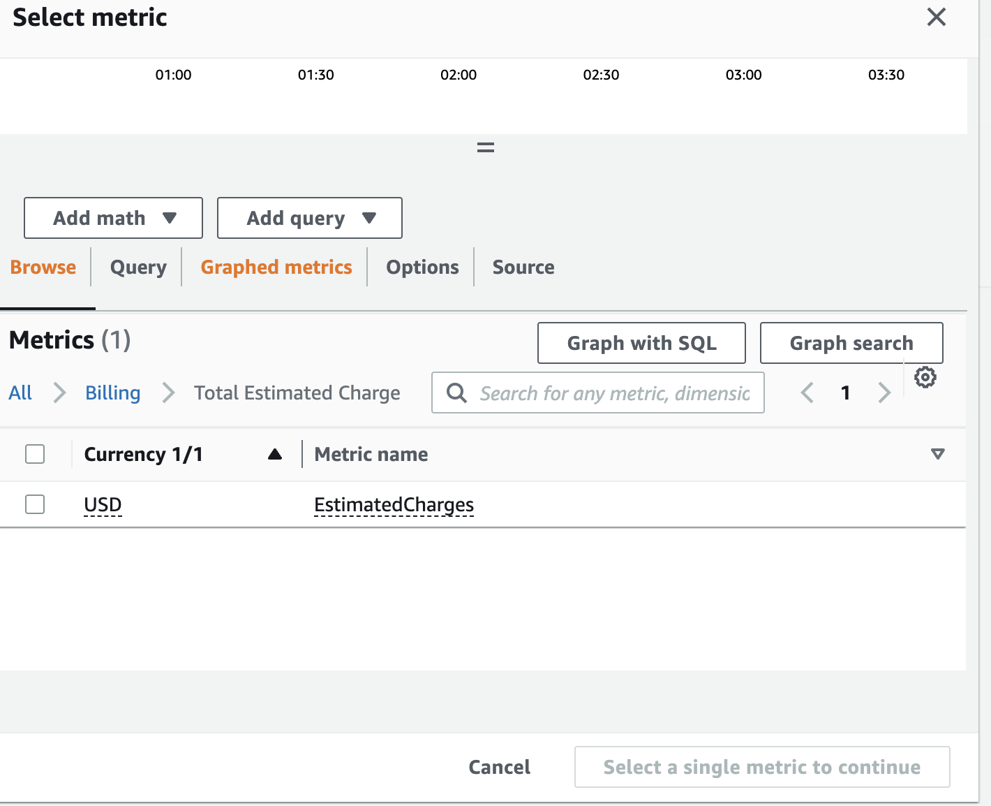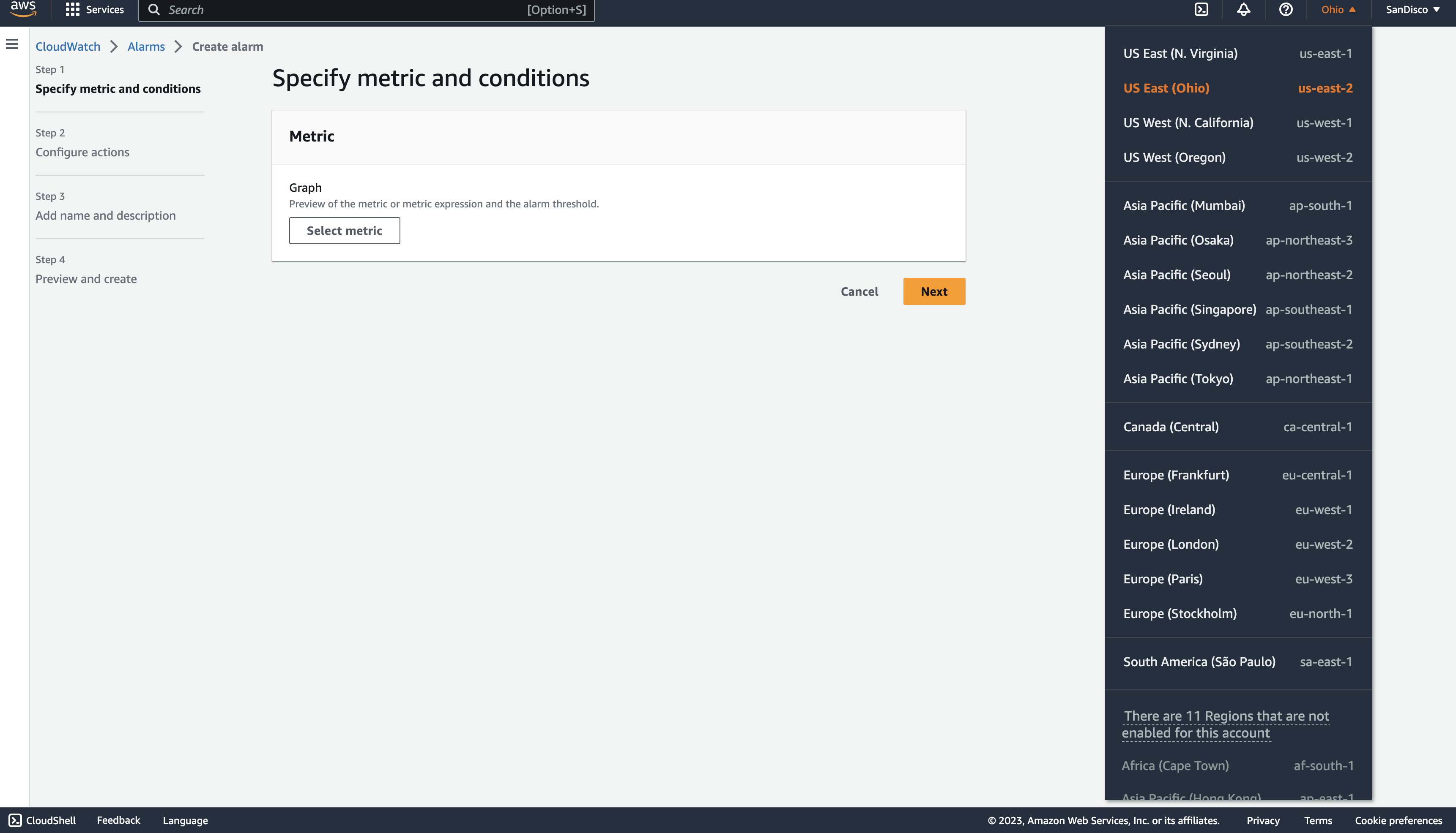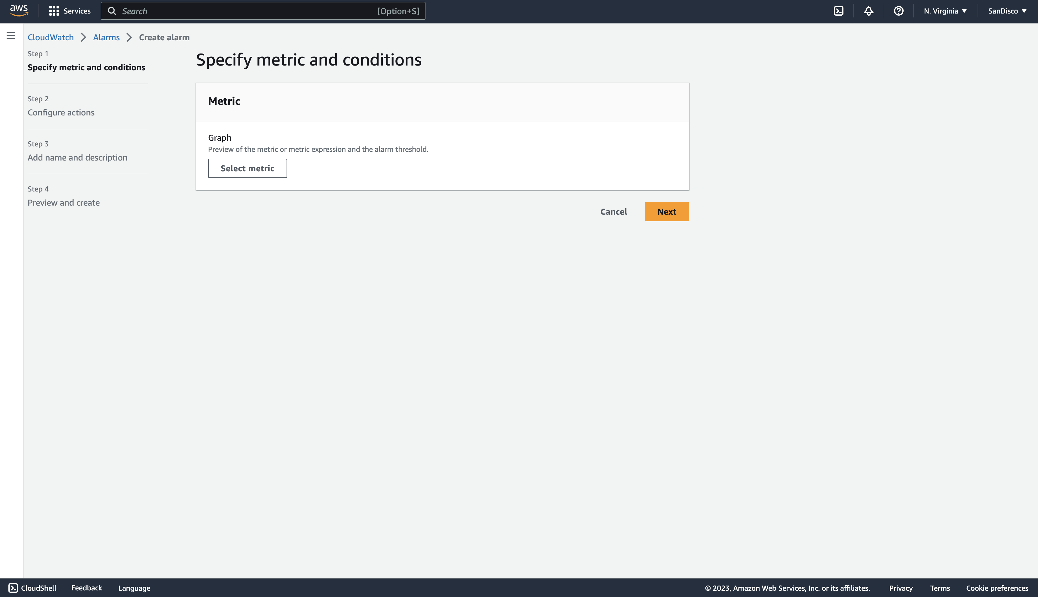 - In the Specify metric and condition page, make sure set the condition and the period, then in the condition, set the threshold for the charge