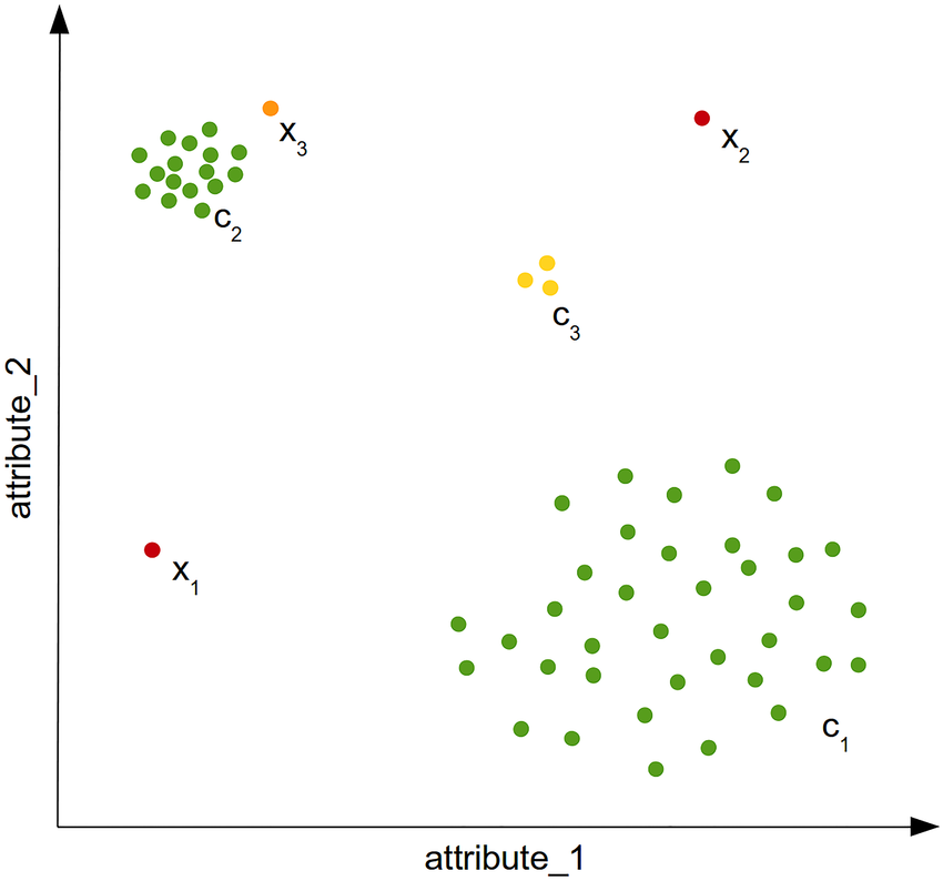 A Local Anomaly is the observation group that is deviate from the NN(nearest Neighbourhood, it could be a point or collective), as figure above,