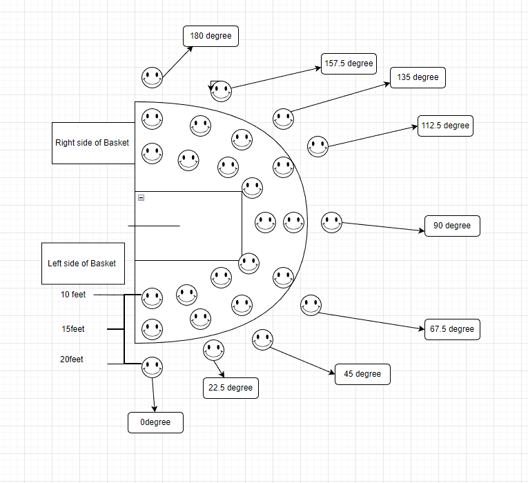 - Shooting efficiency/Shooting Time:The shooting time was measured by recording the time that took a player to make 3 shots in that distance and angel. (lower the better)